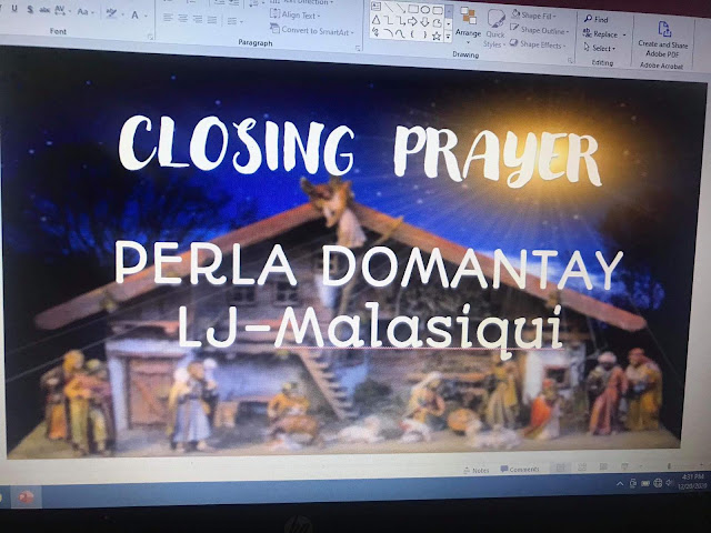 Exciting games and a raffle were also participated by the attendees. Questions about the life of Fr. Butina were also asked to commemorate his 121st Death Anniversary. All the prizes were courtesy of the very generous Dra. Connette Sta Cruz, LJ National Coordinator.The virtual get together ended with the messages from Dra. Connette Sta. Cruz and from Sr. Marcie Sta. Cruz, SSJ Provincial Coordinator, and with a Closing Prayer. Every one of us left the platform with smiles on our faces having experienced the joy of celebrating the birth of Jesus as one Josephine Family. We continued the celebration together in our respective clusters.